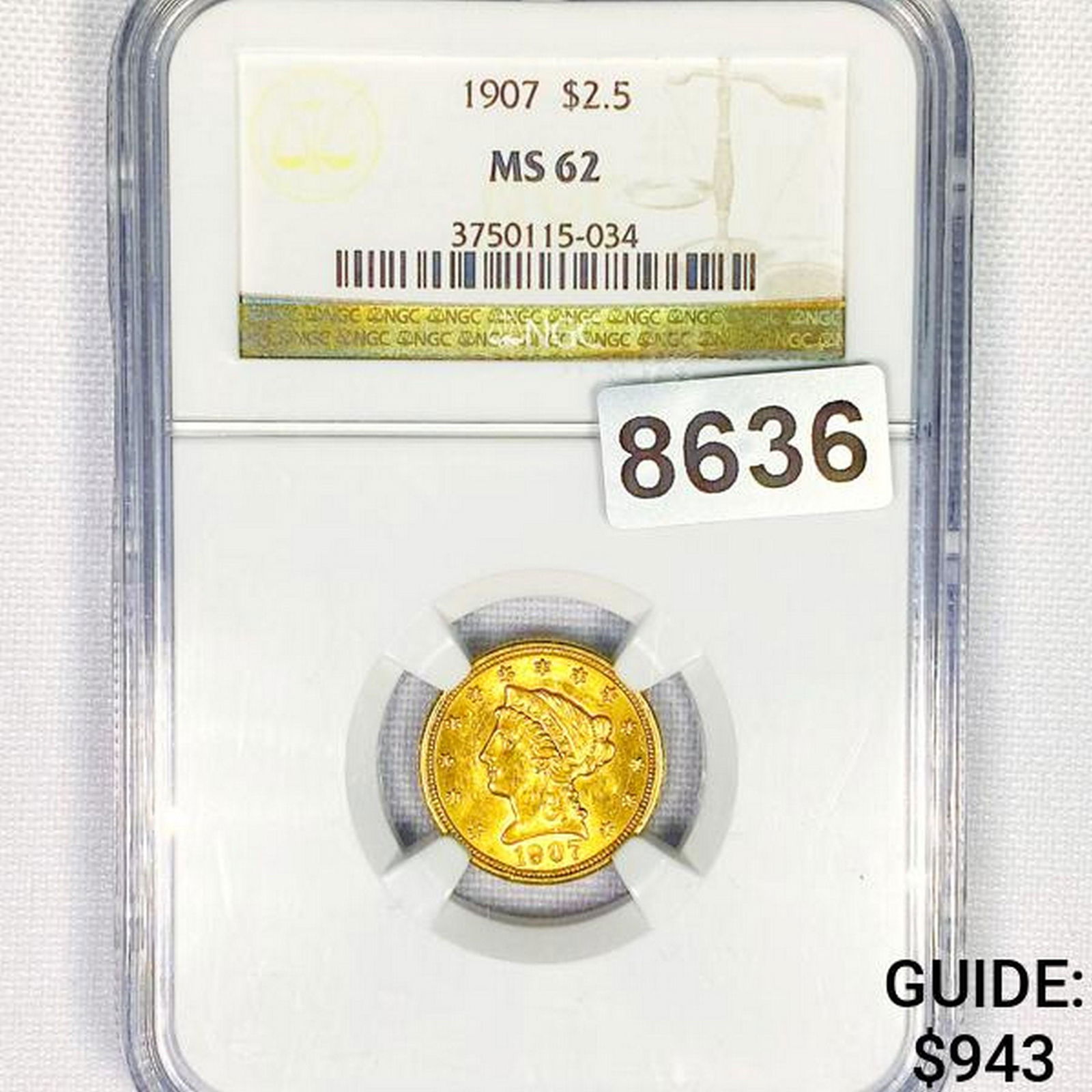 1907 $2.50 Gold Quarter Eagle NGC - MS62