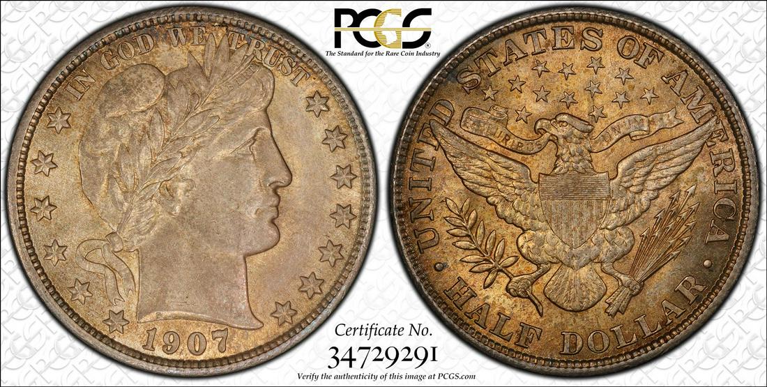 1907 Barber Half Dollar Coin PCGS MS64