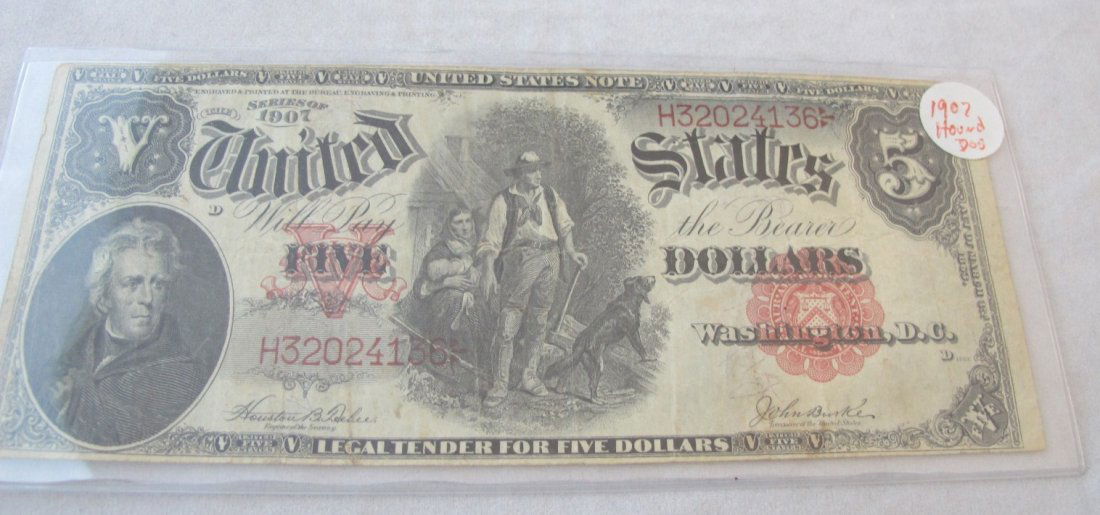 1907 "hound Dog" Five Dollar Note With Red Seal