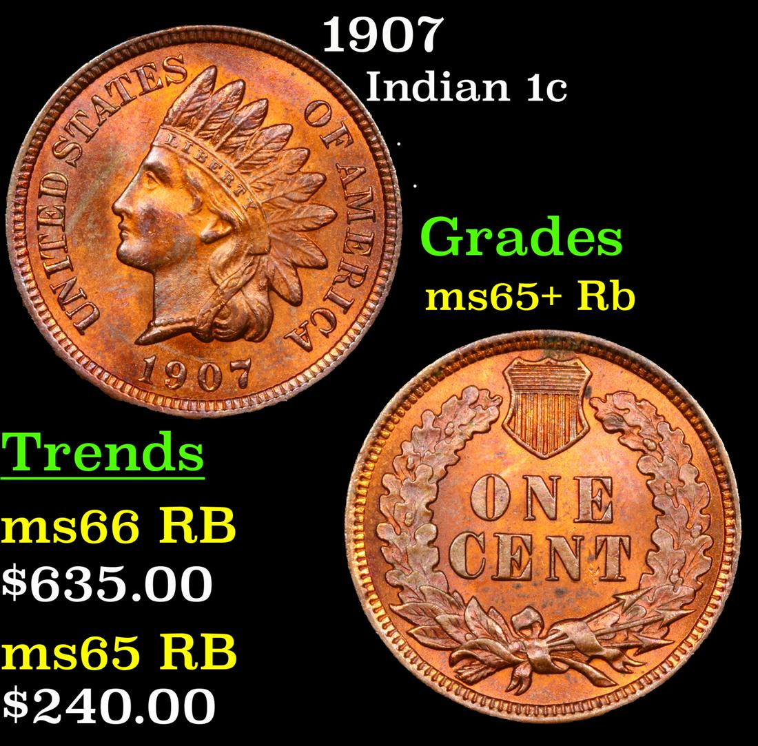 1907 Indian Cent 1c Grades Gem+ Unc Rb