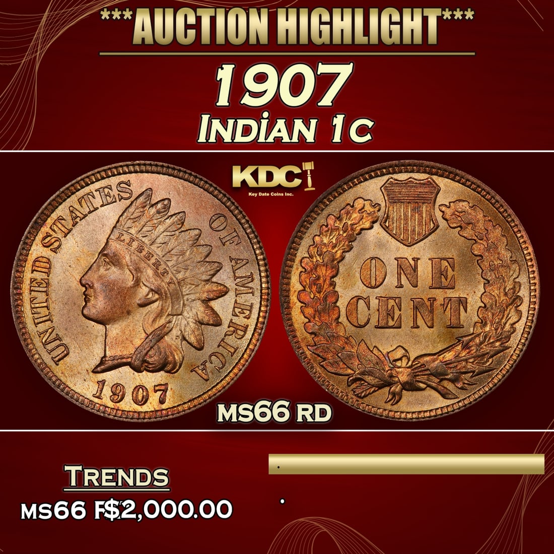 1902 Indian Cent . 1c ms66+ rd SEGS