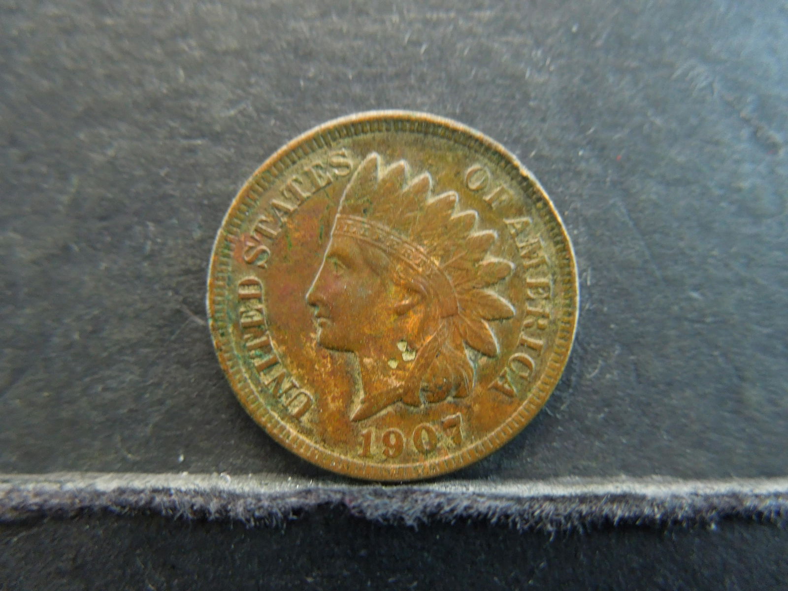 Sold1907 Indian Cent, Full Bold Liberty, 4 Diamonds, AU+.1907 Indian Cent, Full Bold Liberty, 4 Diamonds, AU+.See Sold Price