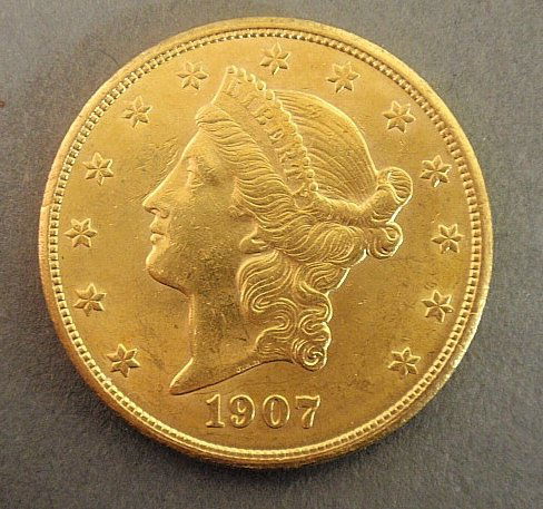 1907 Liberty Double Eagle $20.00 gold coin. BU