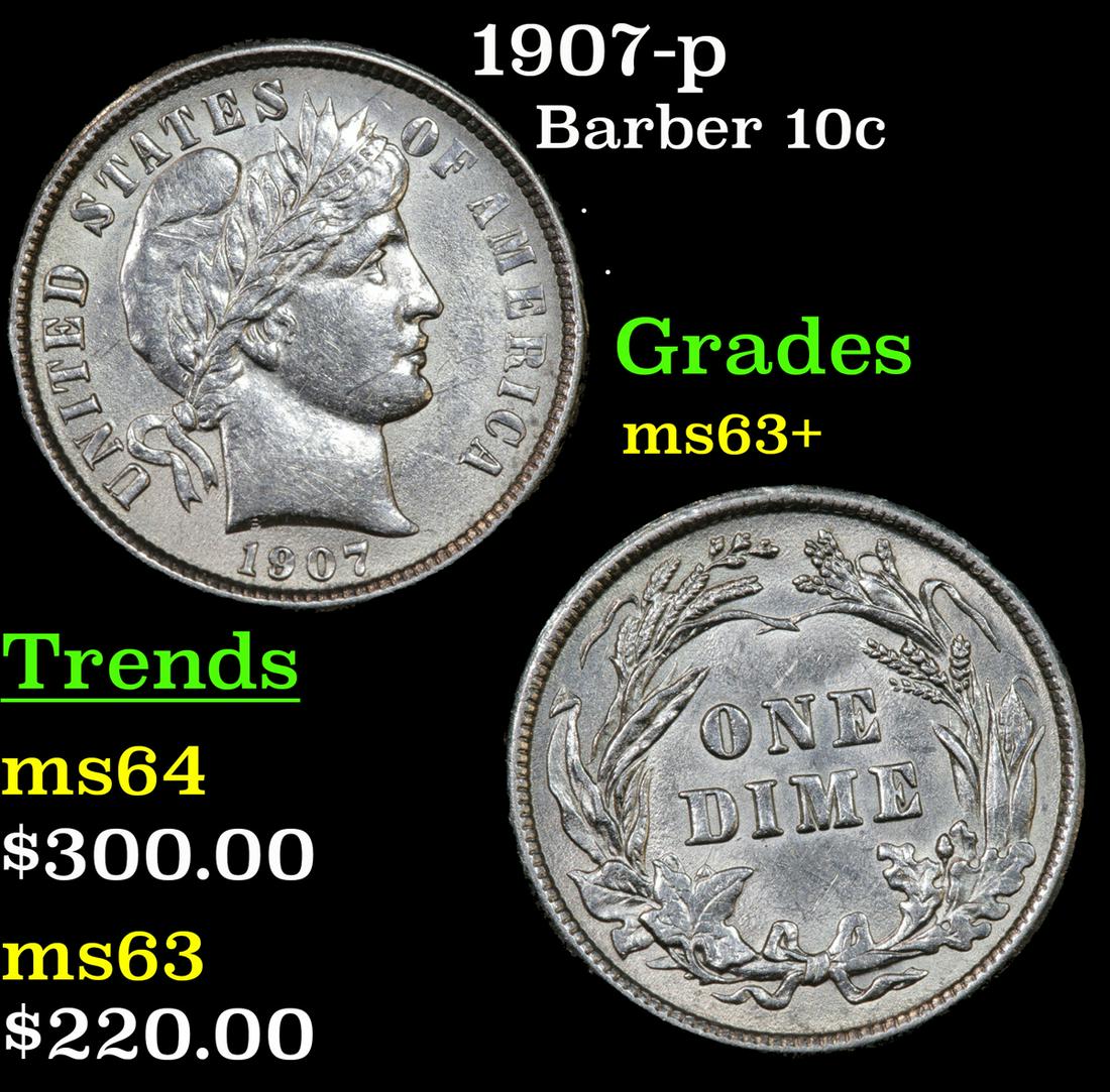 1907-p Barber Dime 10c Grades Select+ Unc