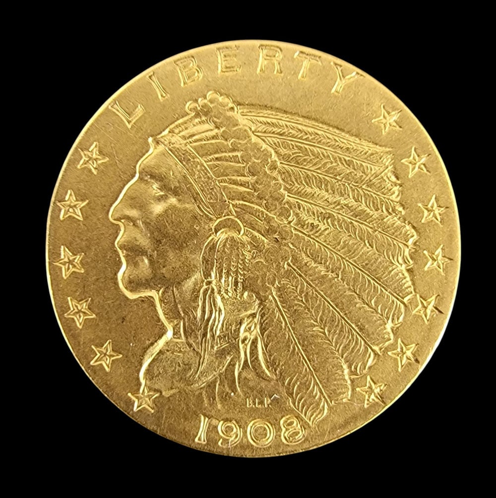 1908 Quarter Eagle Indian Gold Coin AU Grade Uncertified United StatesMynt Auctions4.4(834)$1001 day Left