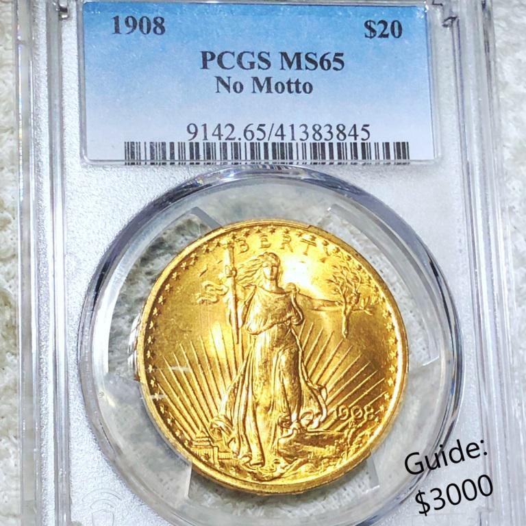 1908 $20 Gold Double Eagle PCGS - MS65 NO MOTTO