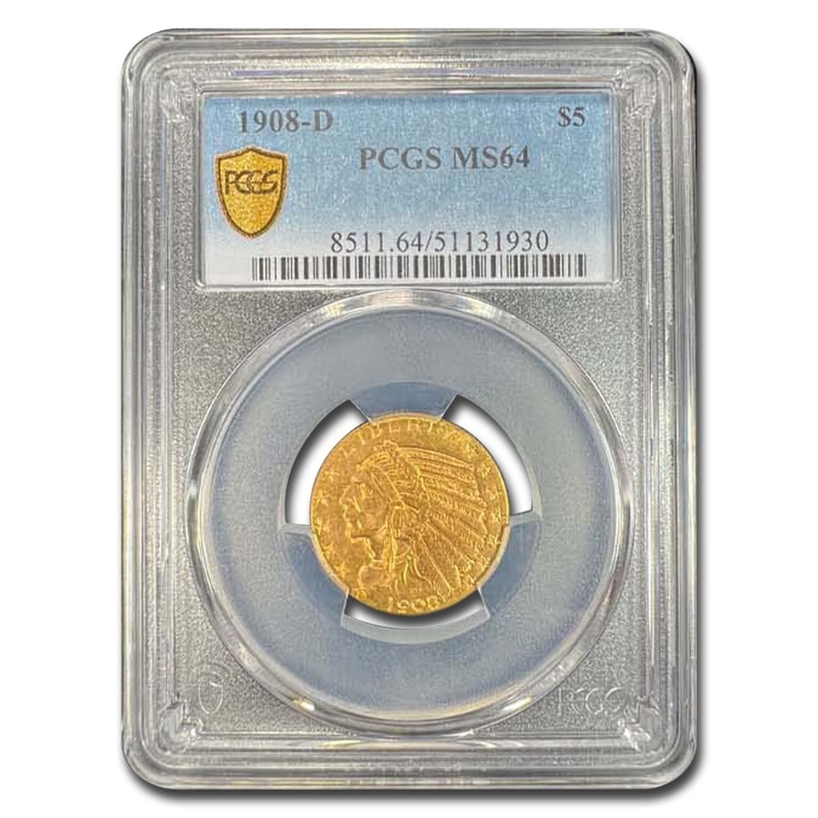 1908-D $5 Indian Gold Half Eagle MS-64 PCGS