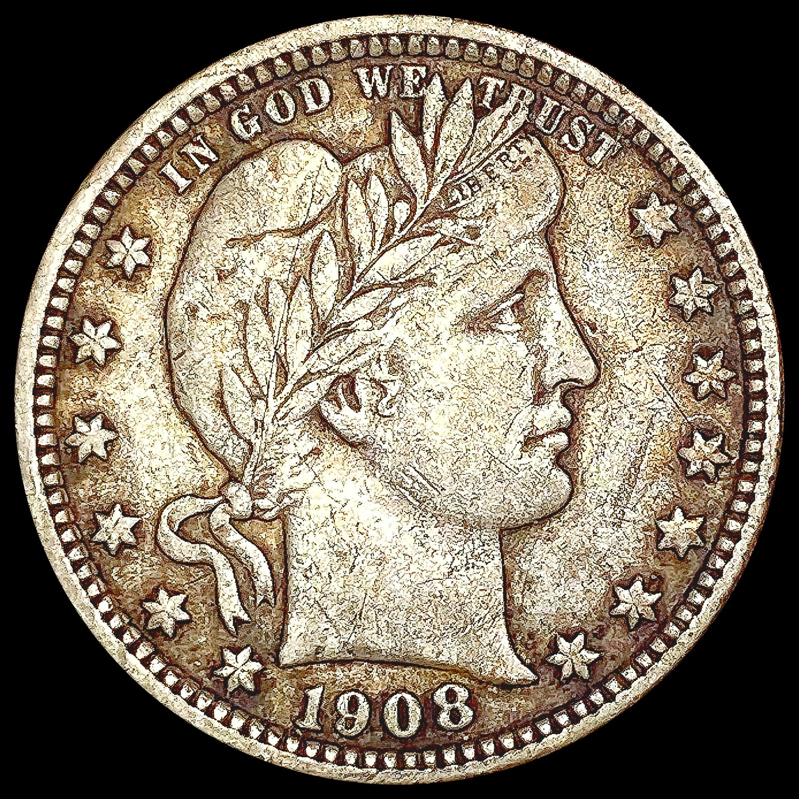 1908-S Silver Barber Quarter LIGHTLY CIRCULATED