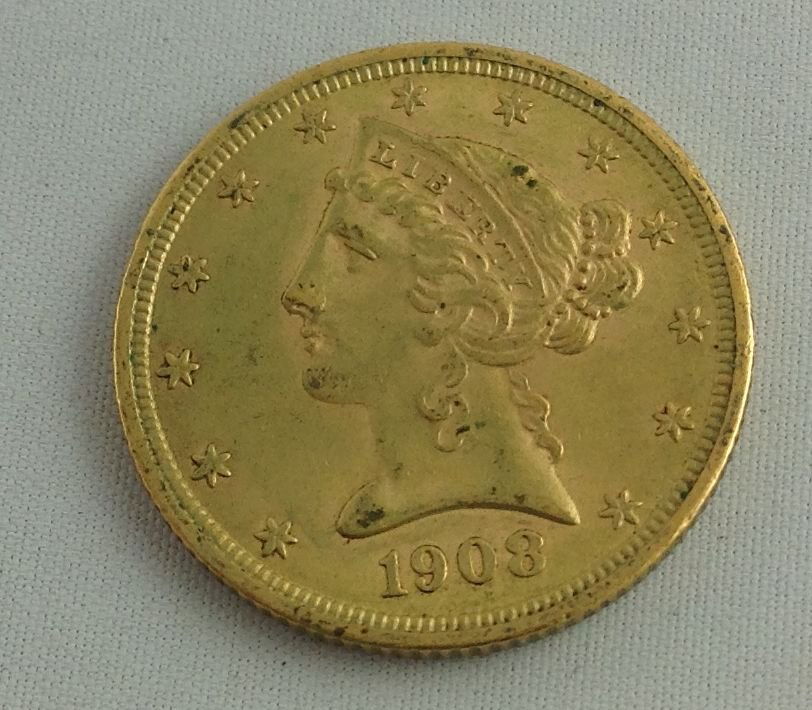 1908 Liberty Head US $5 Gold Half Eagle Coin