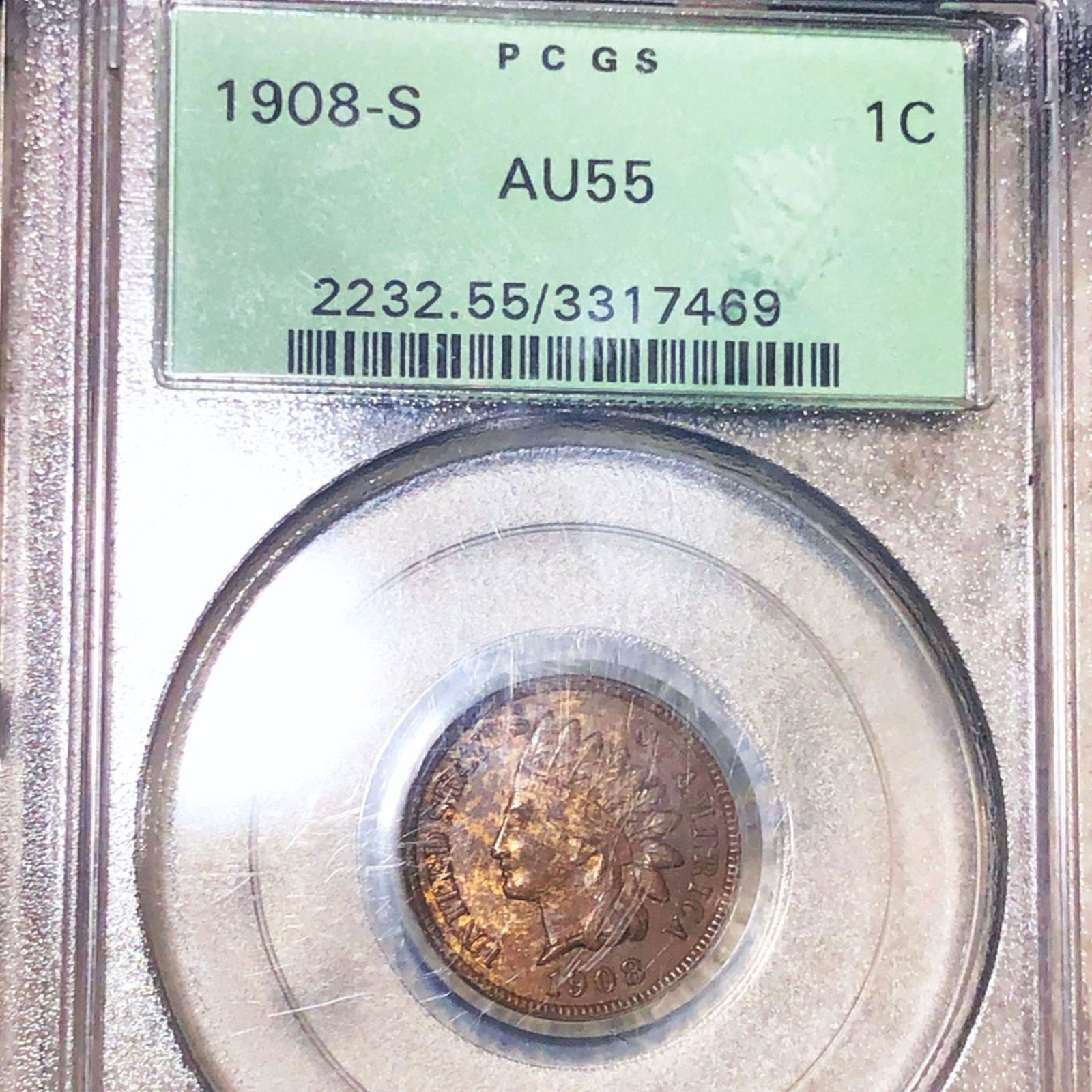 1908 S Indian Head Penny Pcgs Au55