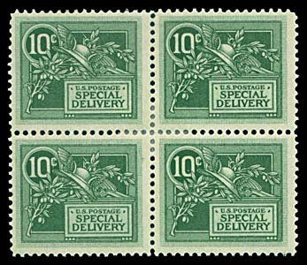 1908 USA #E7 MERCURY'S HELMET 10¢ GREEN, BLOCK
