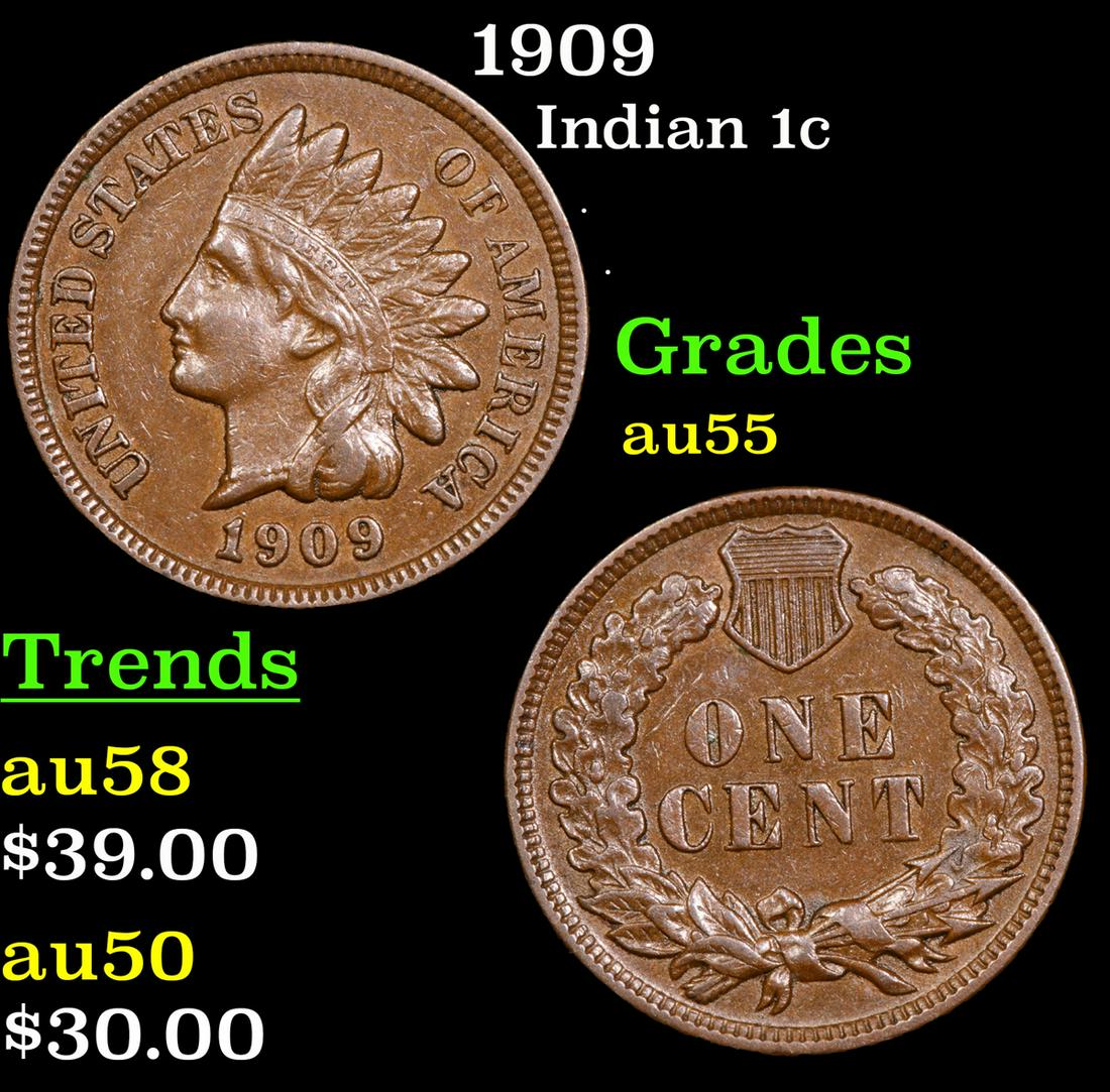 1909 Indian Cent 1c Grades Choice AU