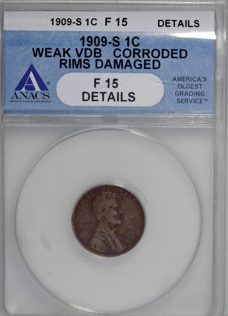 1909-S VDB 1C--Weak VDB, Corroded, Rims