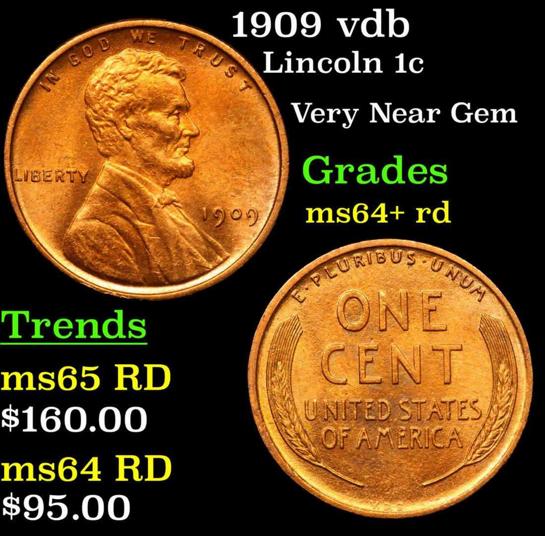 1909 vdb Lincoln 1c Grades Choice+ Unc RD