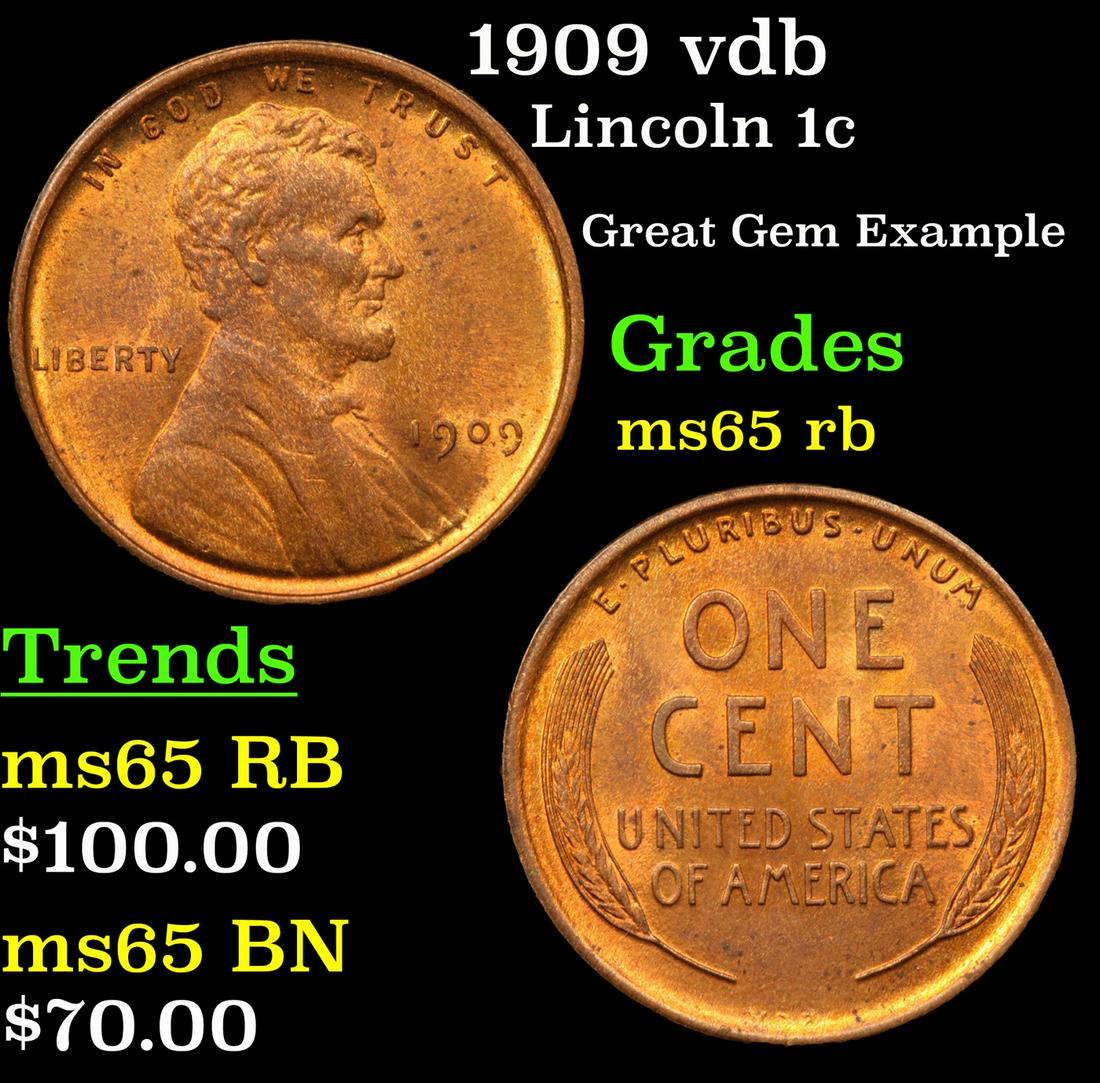 1909 vdb Lincoln 1c Grades GEM Unc RB