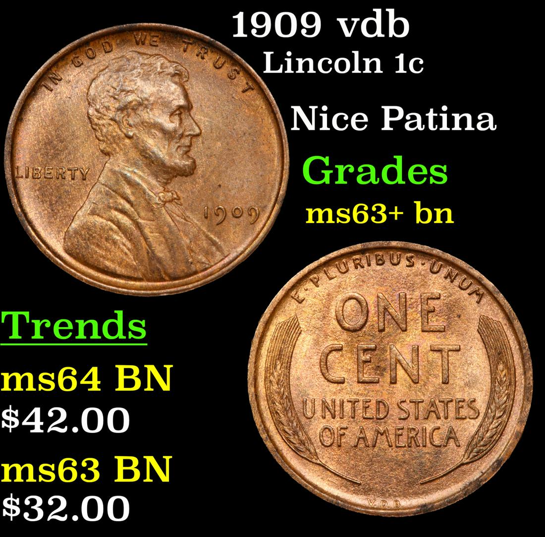 1909 VDB Lincoln Cent 1c Grades ms66 rd