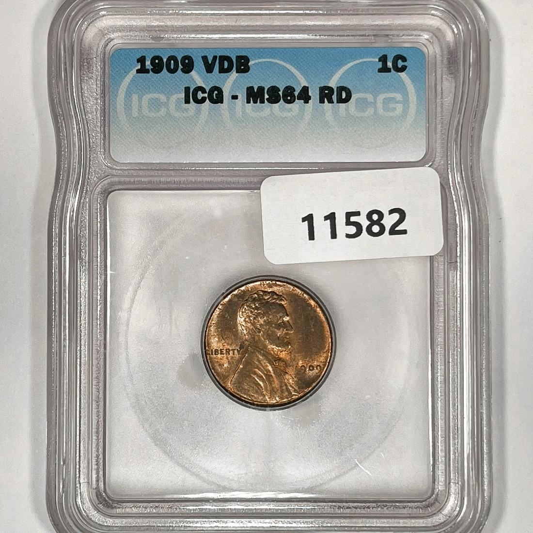 1909 VDB Wheat Cent ICG-MS64 RD