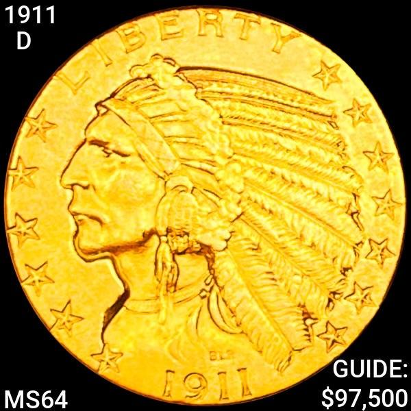 1911-D $5 Gold Half Eagle CHOICE BU