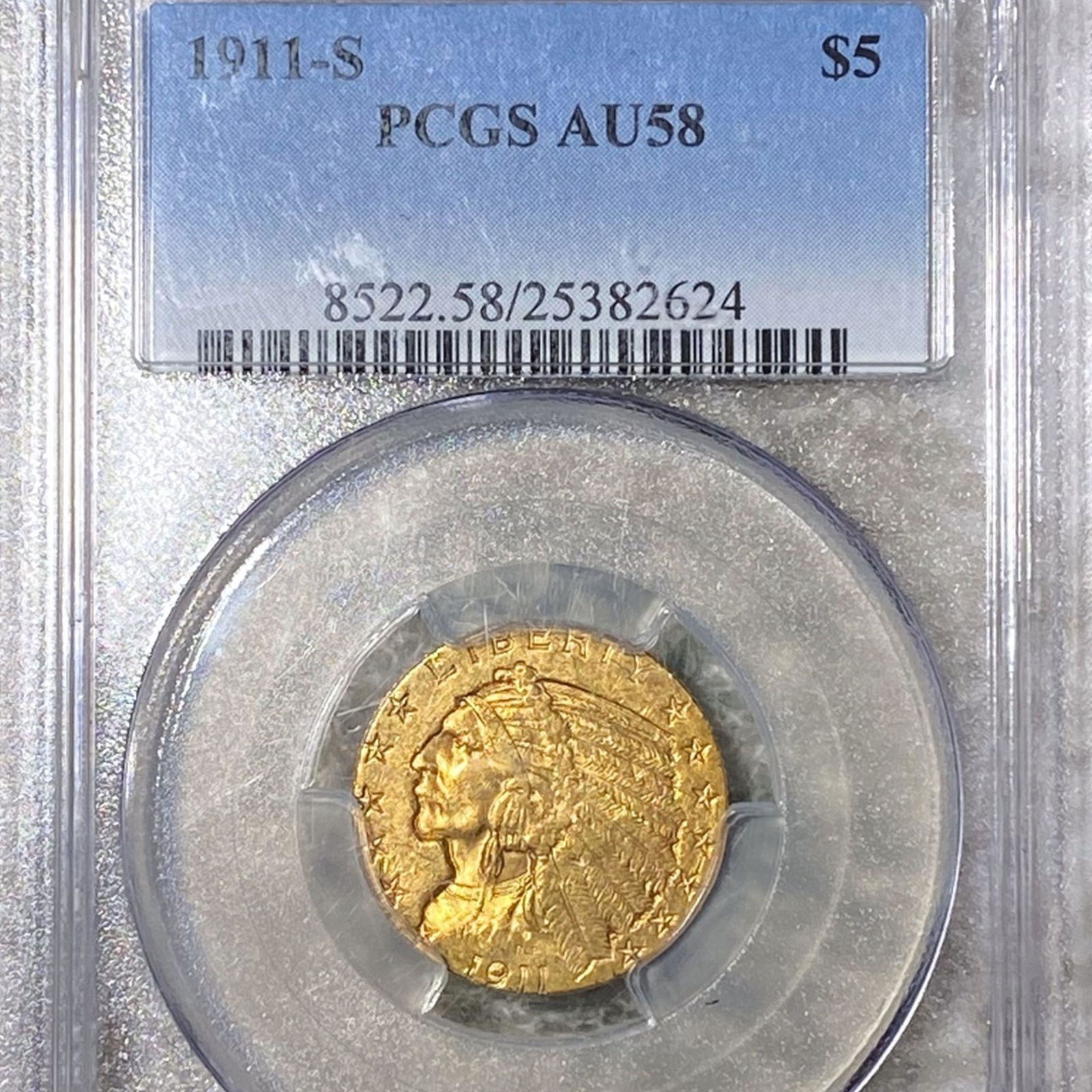 1911-S $5 Gold Half Eagle PCGS - AU58