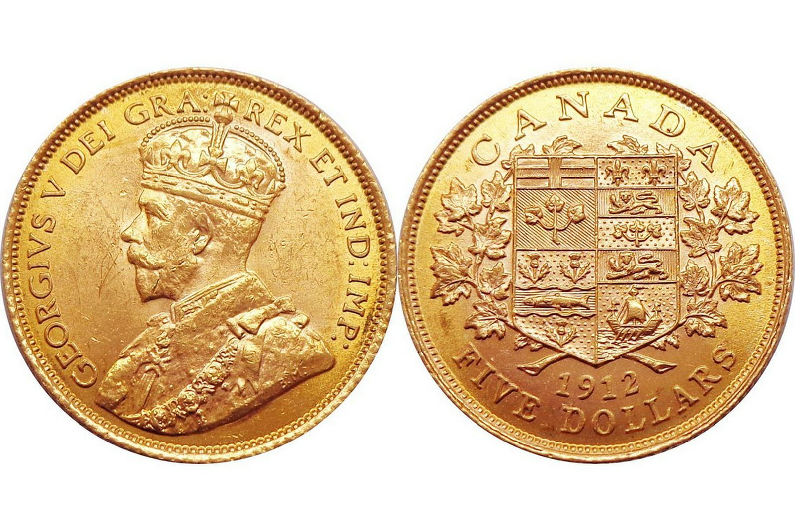 Sold* A Canadian 1912 George V $5 Gold Coin* A Canadian 1912 George V $5 Gold Coin Estimate $300-500 Property from the Estate of Harold R. Decker, Orlando, Florida.See Sold Price
