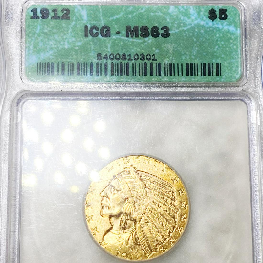 Sold1912 $5 Indian Head Gold Half Eagle ICG MS63 - Trends1912 $5 Indian Head Gold Half Eagle ICG MS63 - Trends at $1,250See Sold Price