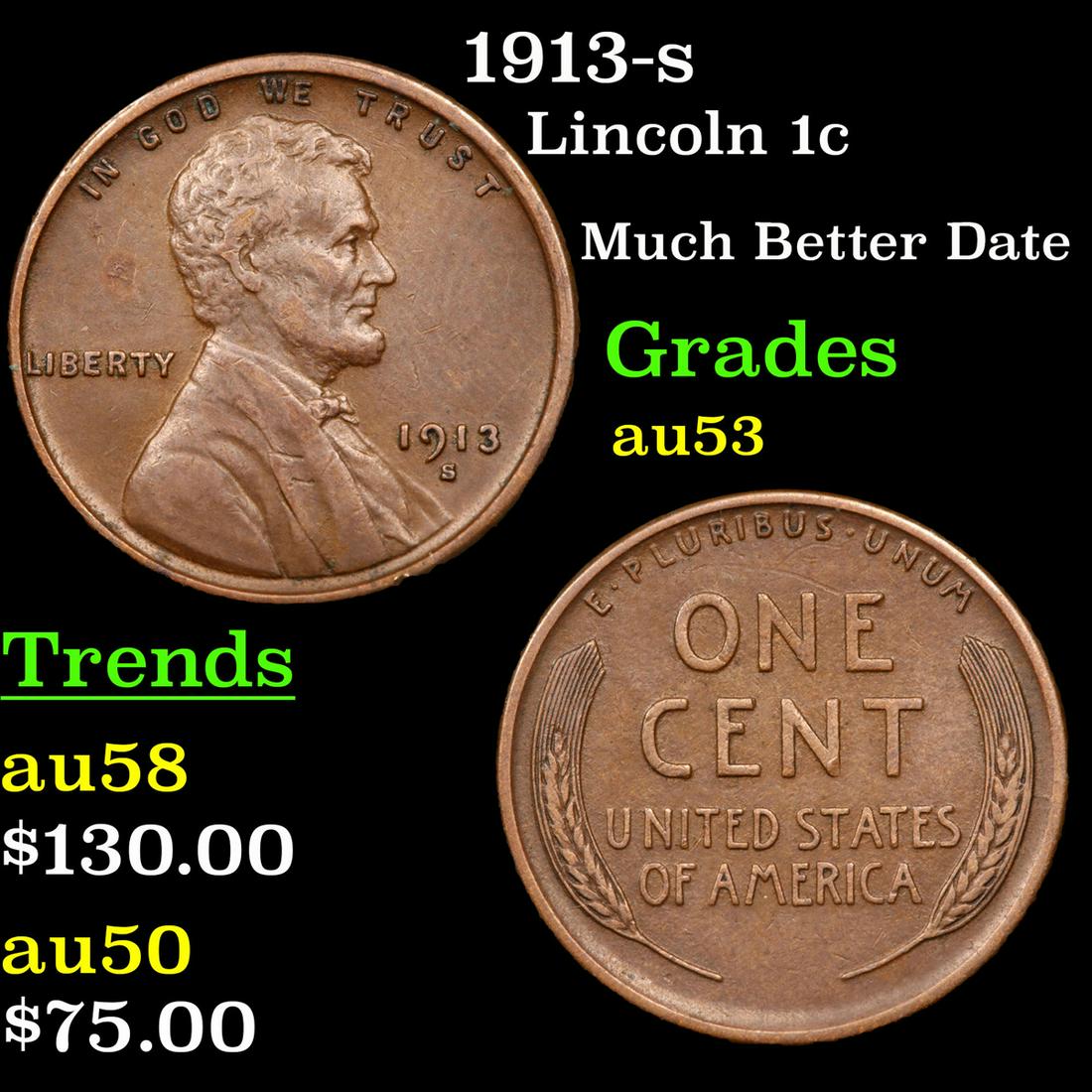 1913-s Lincoln 1c Grades Select AU