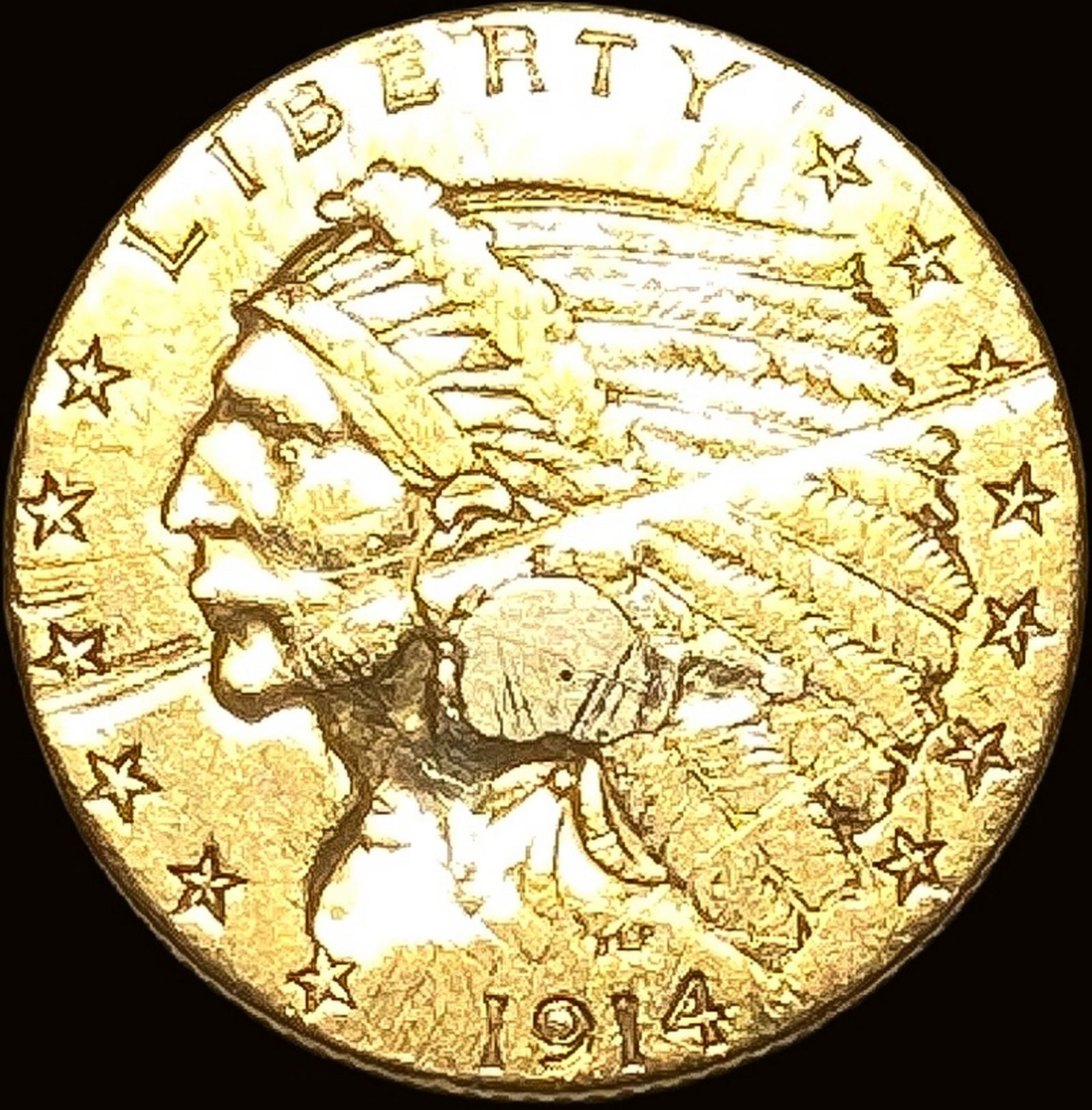 1914 Indian Head Gold Half Eagle $5 CLOSELY UNCIRCULATED
