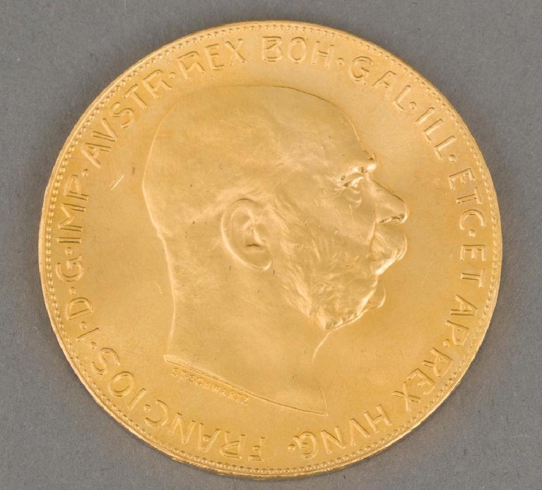 SoldAUSTRIAN 1915 100 CORONA 90% GOLD COIN11060AUSTRIAN 1915 100 CORONA 90% GOLD COIN Austrian 1915 100 Corona 90% gold coin. These coins were minted in the 1970's to get around the loophole of Americans not being able to own gold bullion, buSee Sold Price