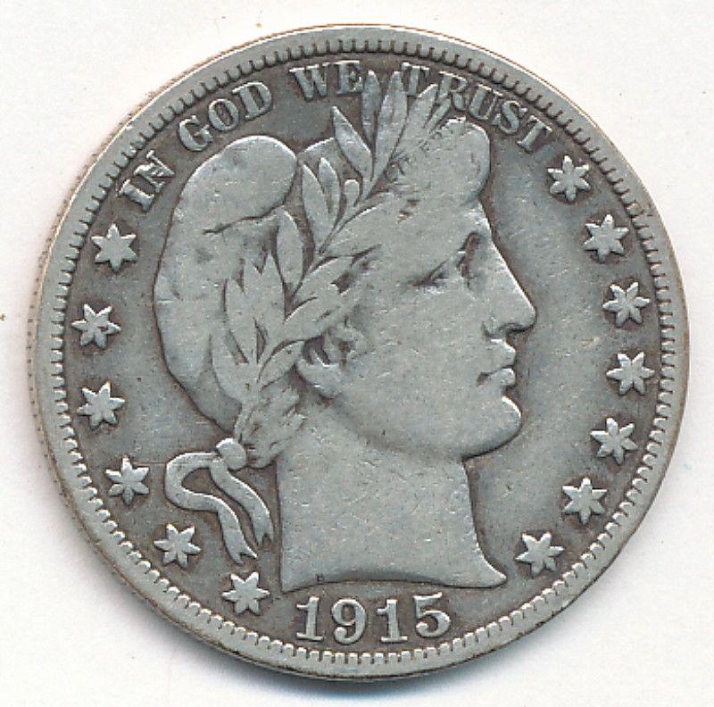 Sold1915-p Barber 50c Grades f, fine1915-p Barber Half Dollars 50c Grades f, fine. This is a very difficult date. The 1915-p is the second lowest mintage issue of the series with only 138,000 pieces struck.See Sold Price