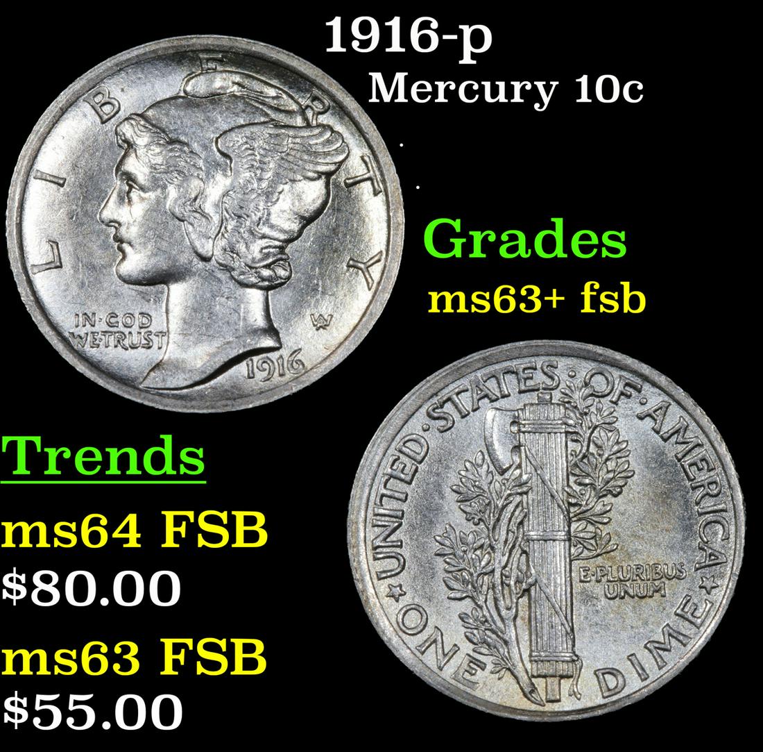 1916-p Mercury Dime 10c Grades Select Unc+ FSB