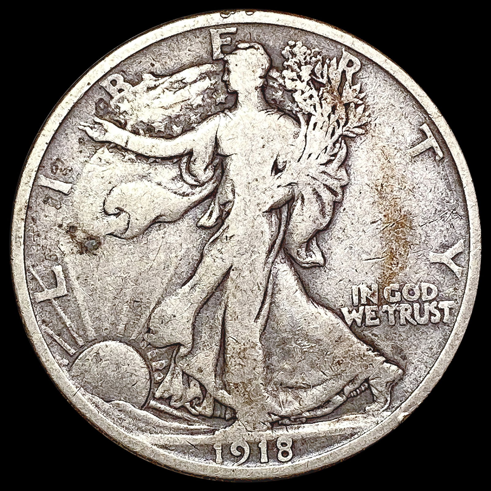 1918 D Walking Liberty Half Dollar Nicely Circulated