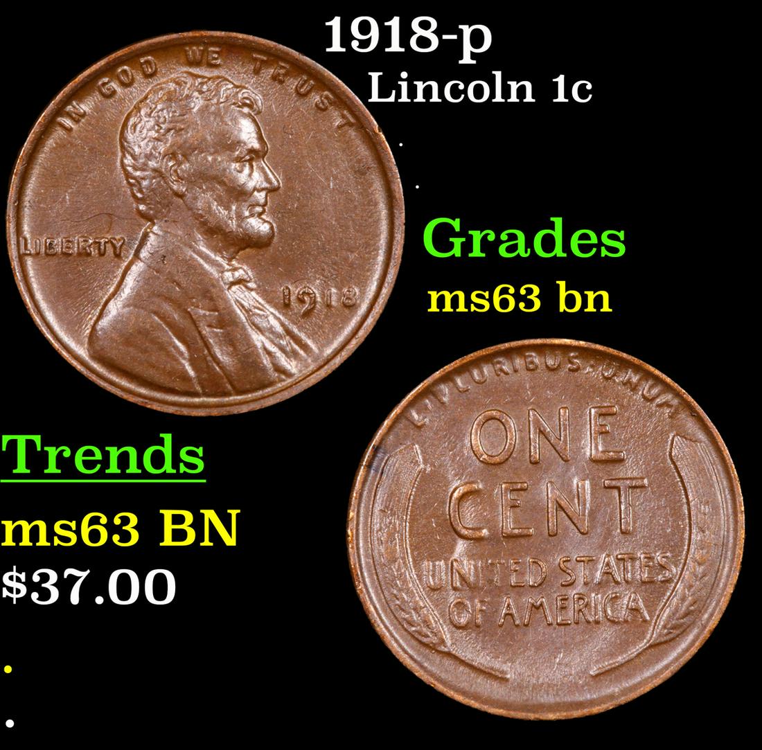 1918-p Lincoln Cent 1c Grades Select Unc BN