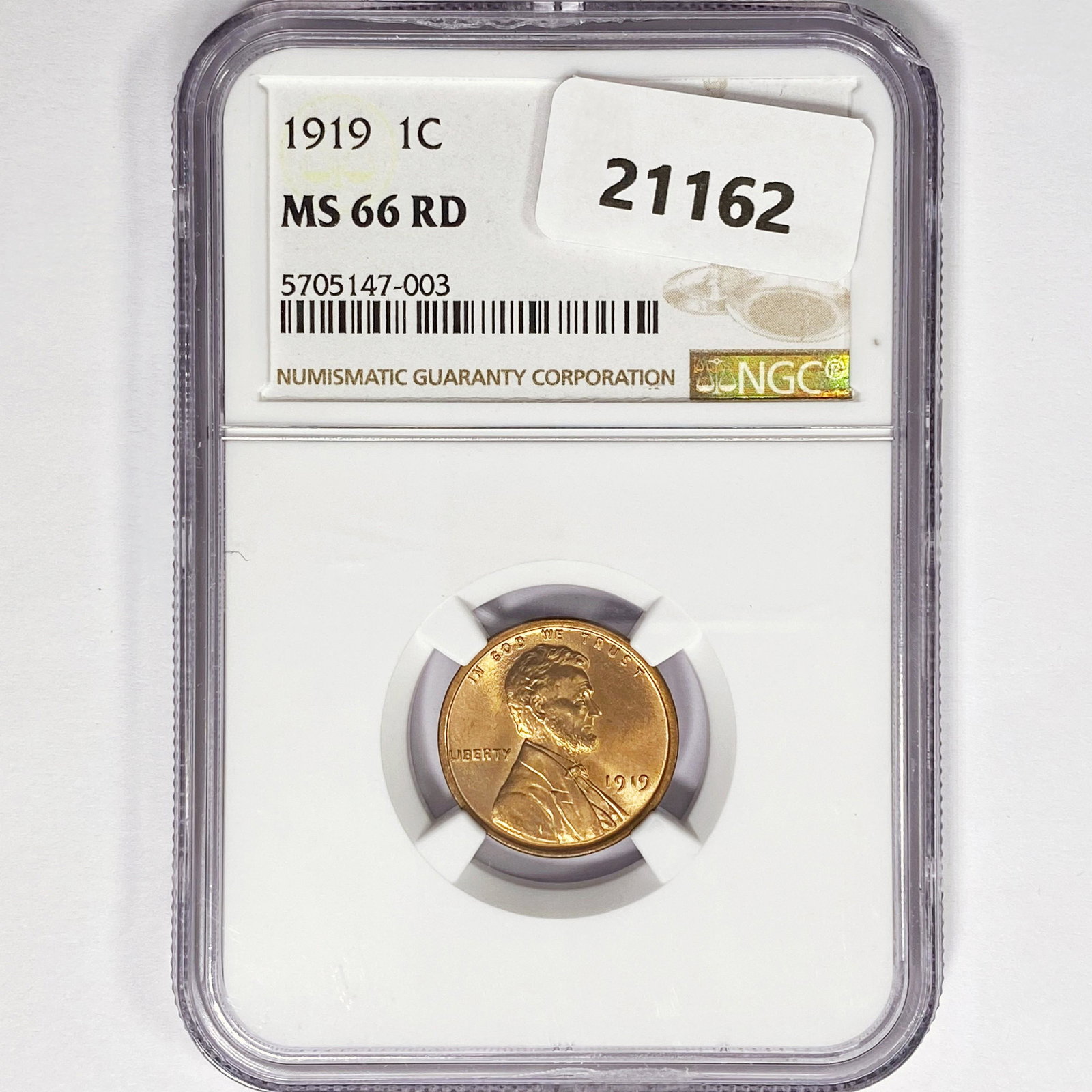 1919 Wheat Cent NGC MS66 RD