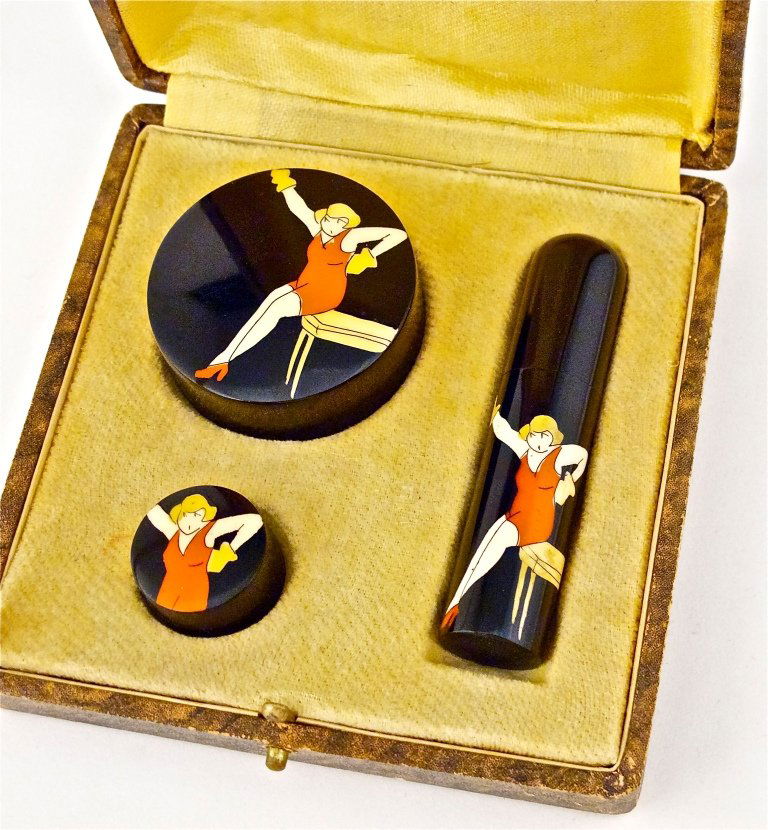 1920s Deco Celluloid 3-Pc Make-up Purse Set