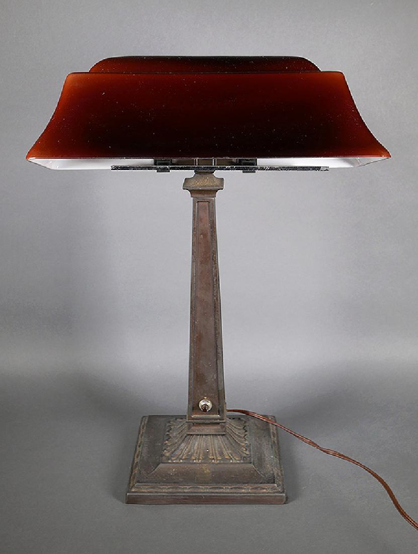 1920s Emeralite Brown Shade Desk Lamp W Diffuser
