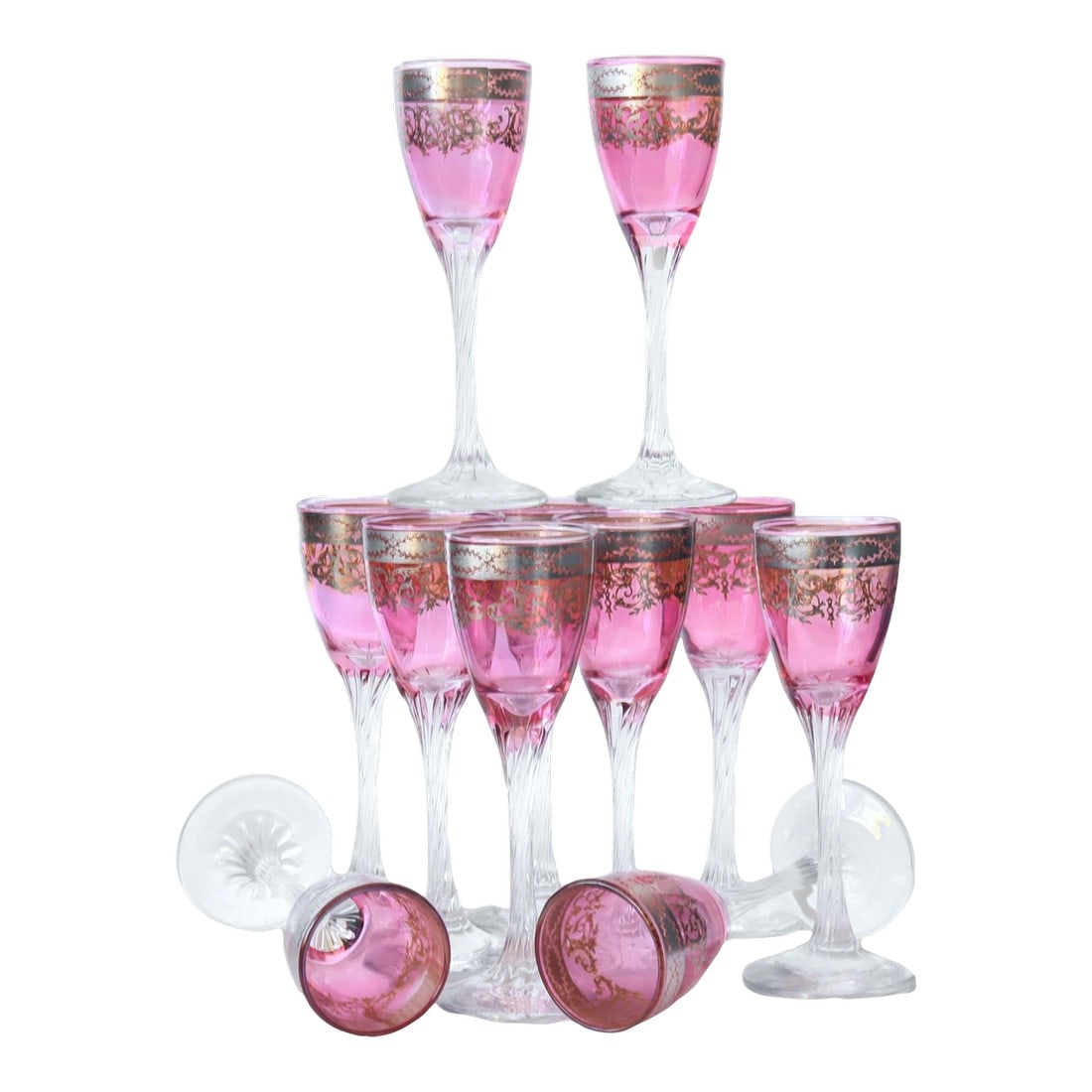 8 Venetian Cranberry Red and Clear Gilt and Enamel Wine Goblets circa 1950Carnegie's Auction Gallery4.4(13)$2504 days Left