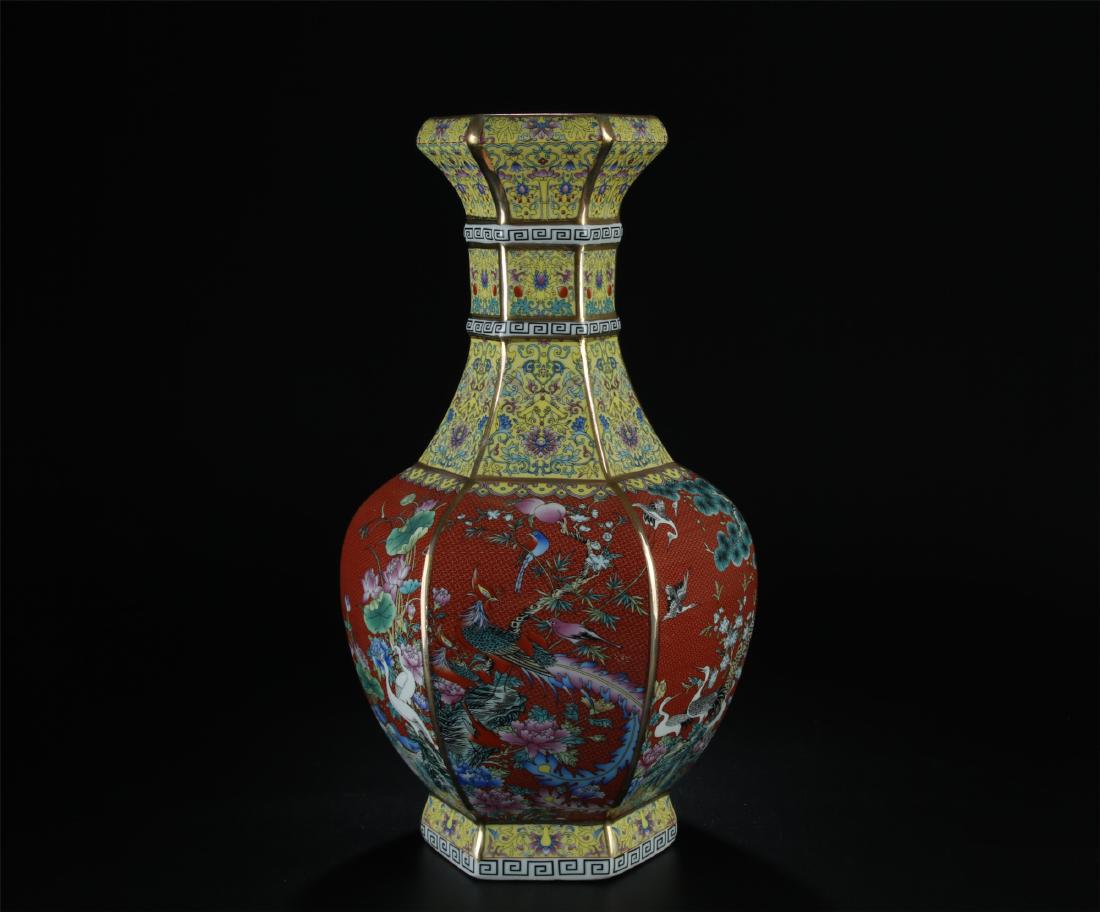19/20th C. nice enamel painted wucai vase/phoenix