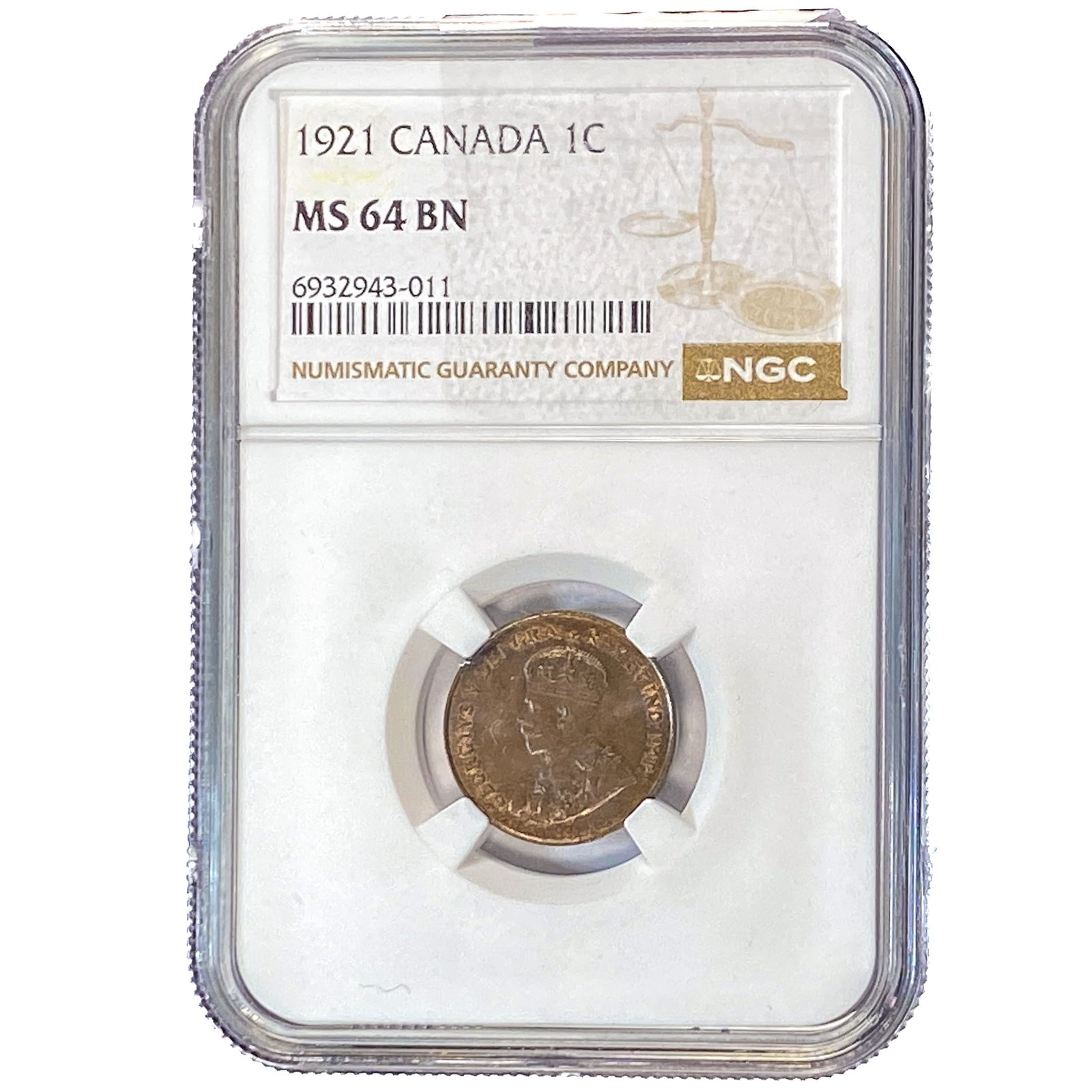 1921 Canada 1C NGC MS64 BN