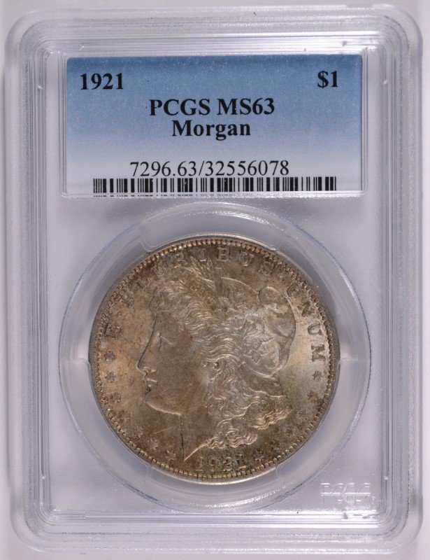 1921 MORGAN SILVER DOLLAR, PCGS MS-63
