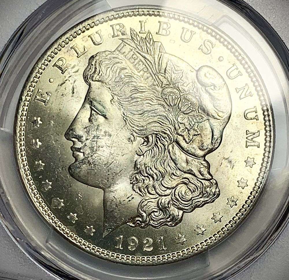 Sold1921 Morgan Silver Dollar PCGS MS63 Pitted Reverese1921 Morgan Silver Dollar PCGS MS63 Pitted RevereseSee Sold Price
