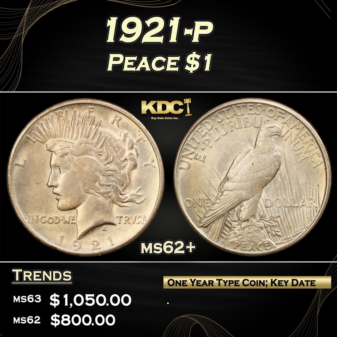 1921-p Peace Dollar $1 Grades ms62+