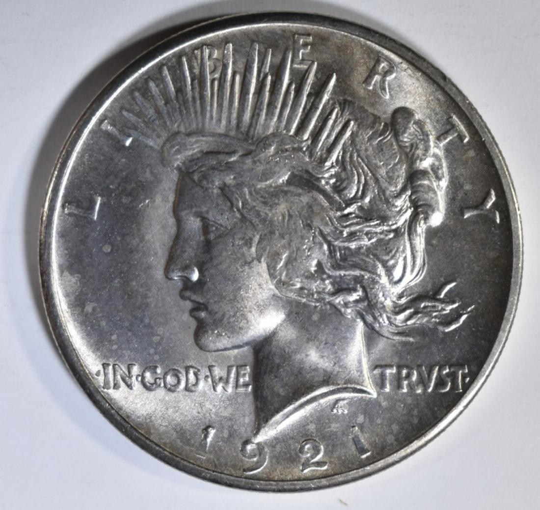 SoldGEM BU $10 Peace Silver Dollar 1921 & 1924 EndsGEM BU $10 Peace Silver Dollar 1921 & 1924 Ends STOCK PHOTOSee Sold Price