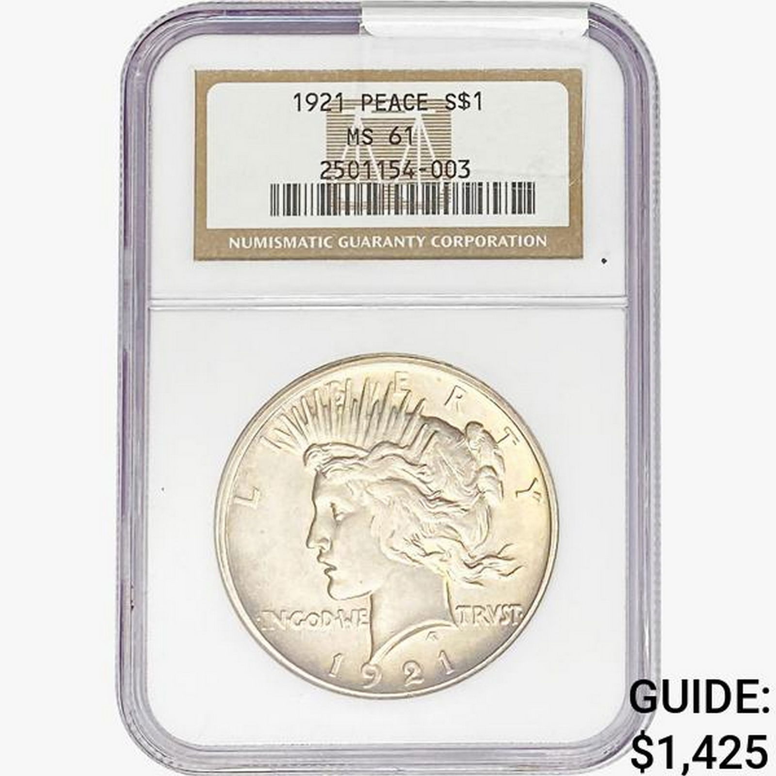 1921 Silver Peace Dollar NGC MS61