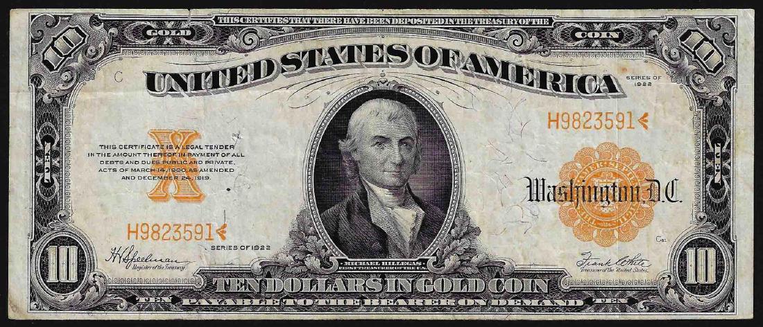 1922 $10 Gold Certificate Note