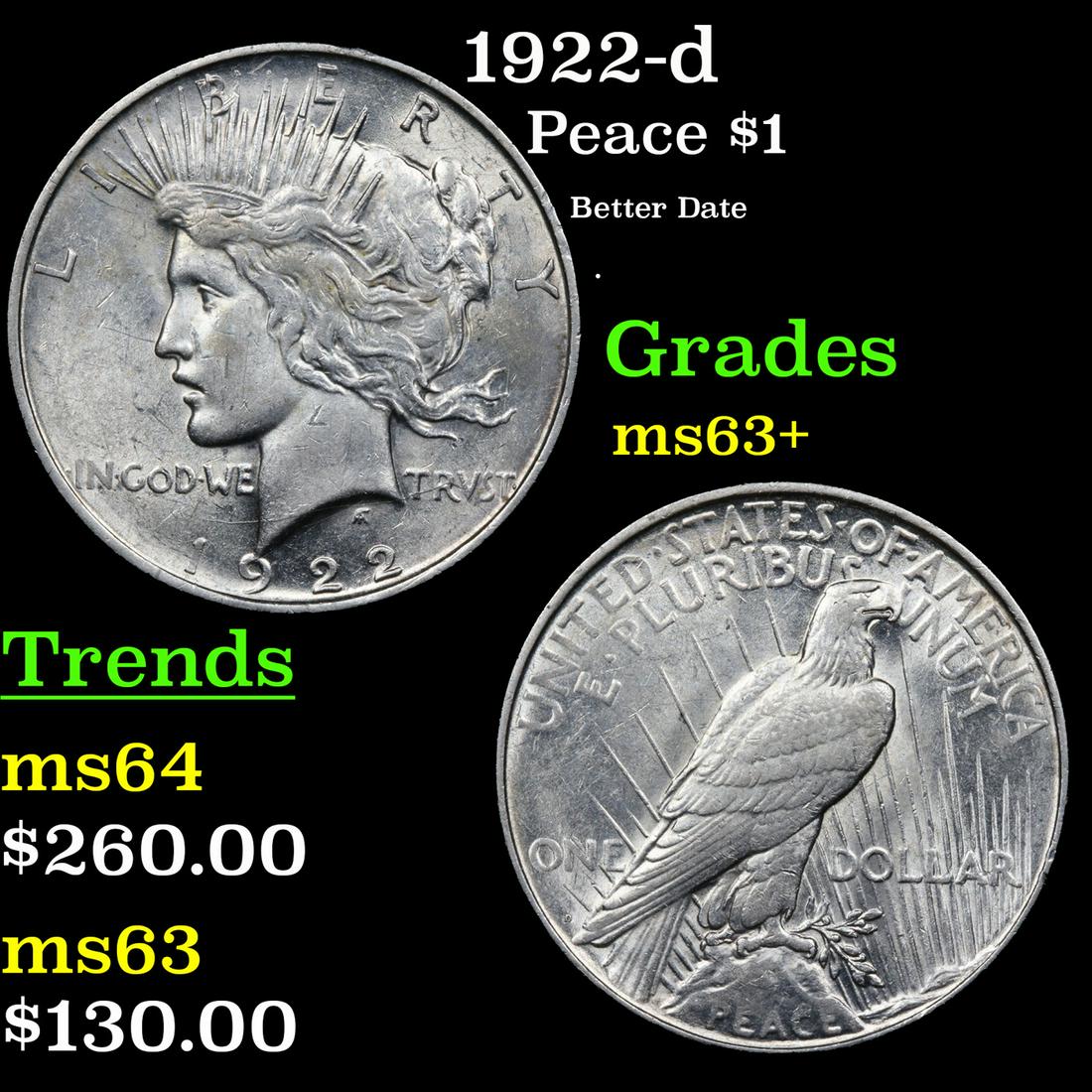 1922 D Peace Dollar $1 Grades Select+ Unc