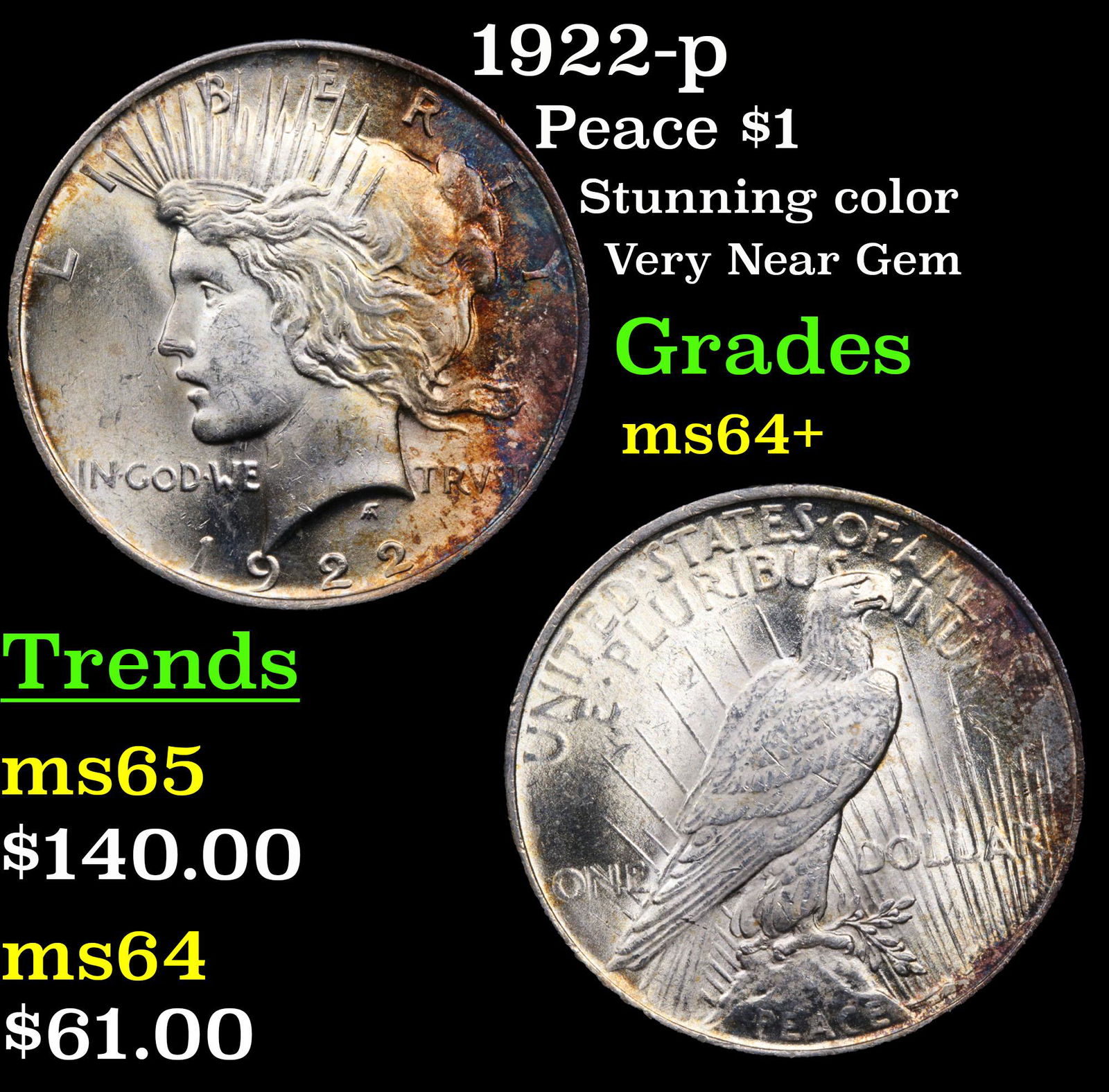 1922 P Peace Dollar $1 Grades Choice+ Unc