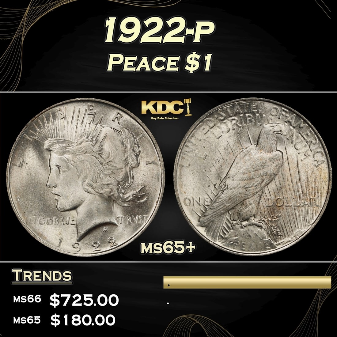 1922-p Peace Dollar $1 Grades ms65+