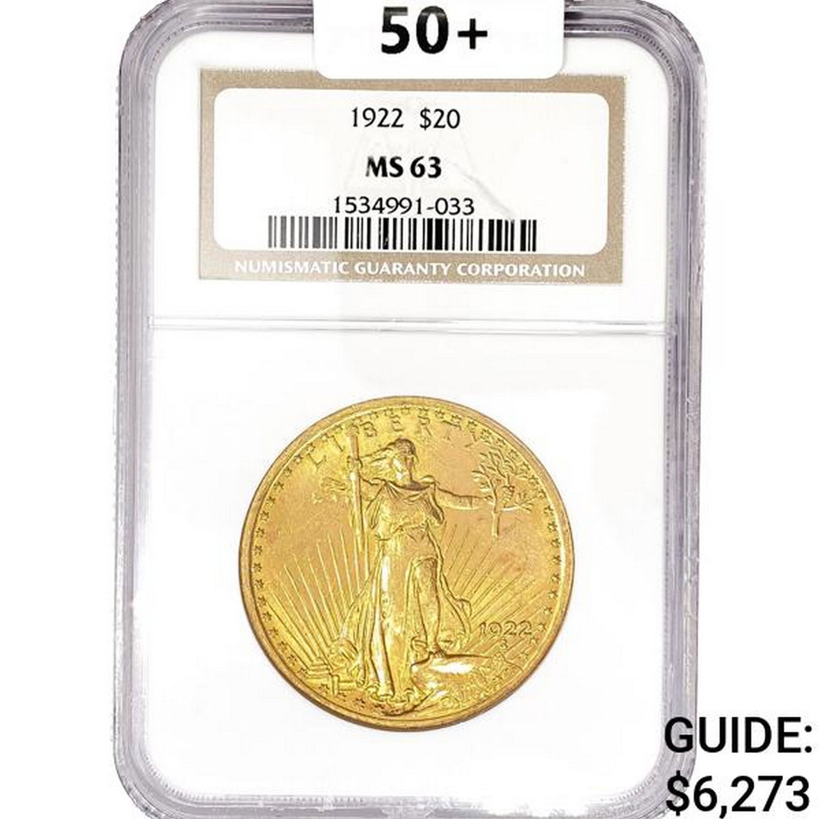 1922 SG $20 Gold Double Eagle NGC MS63