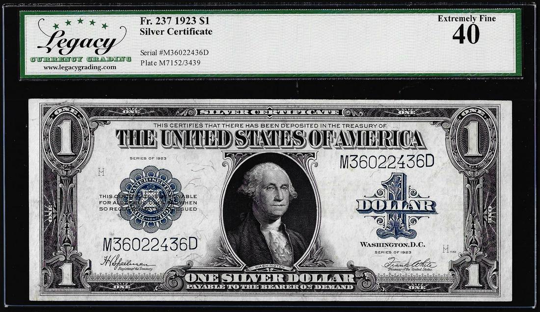 1923 $1 Silver Certificate Note Fr.237 Legacy Extremely Fine 40