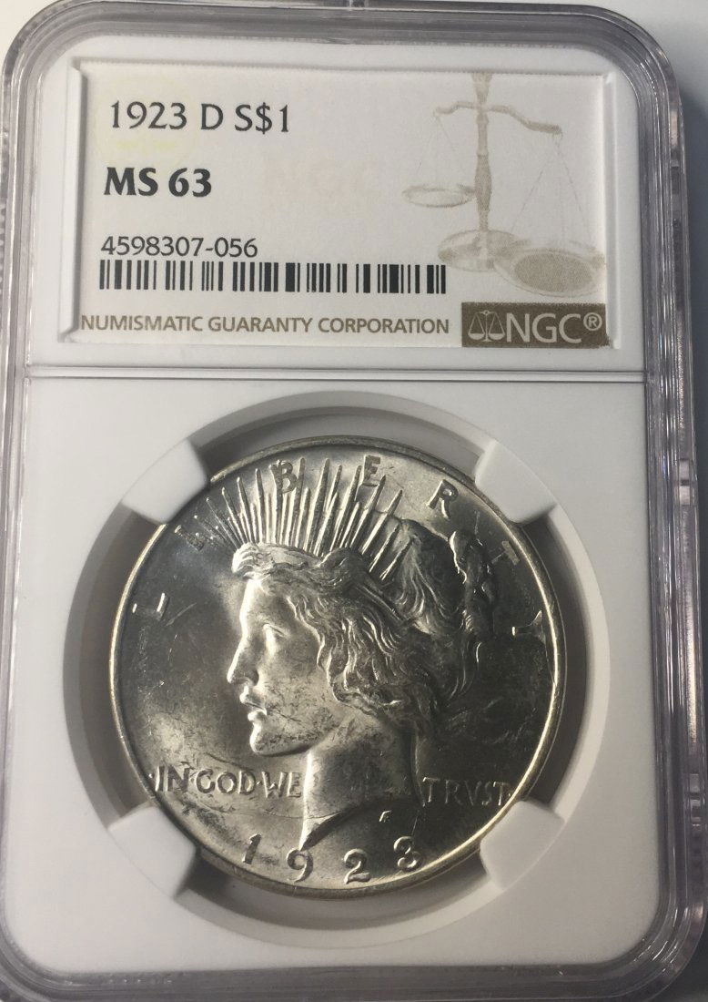 1923-D Peace Dollar S$1 NGC MS63 CAC Certified Uncirculated